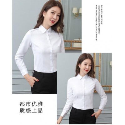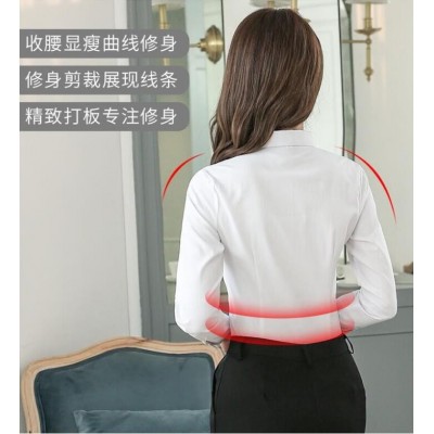 商品名称:修身长袖衬衫女2024秋冬新款工作服气质职业装正装通勤上衣 白色明扣长袖