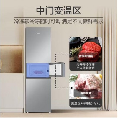 海尔217升风冷无霜三开门多门小户型家用迷你电冰箱宿舍租房一级能效冷冻冷藏两用